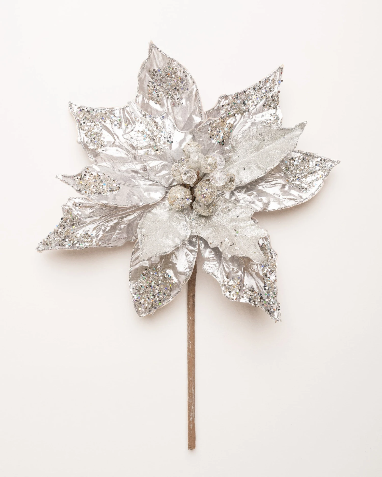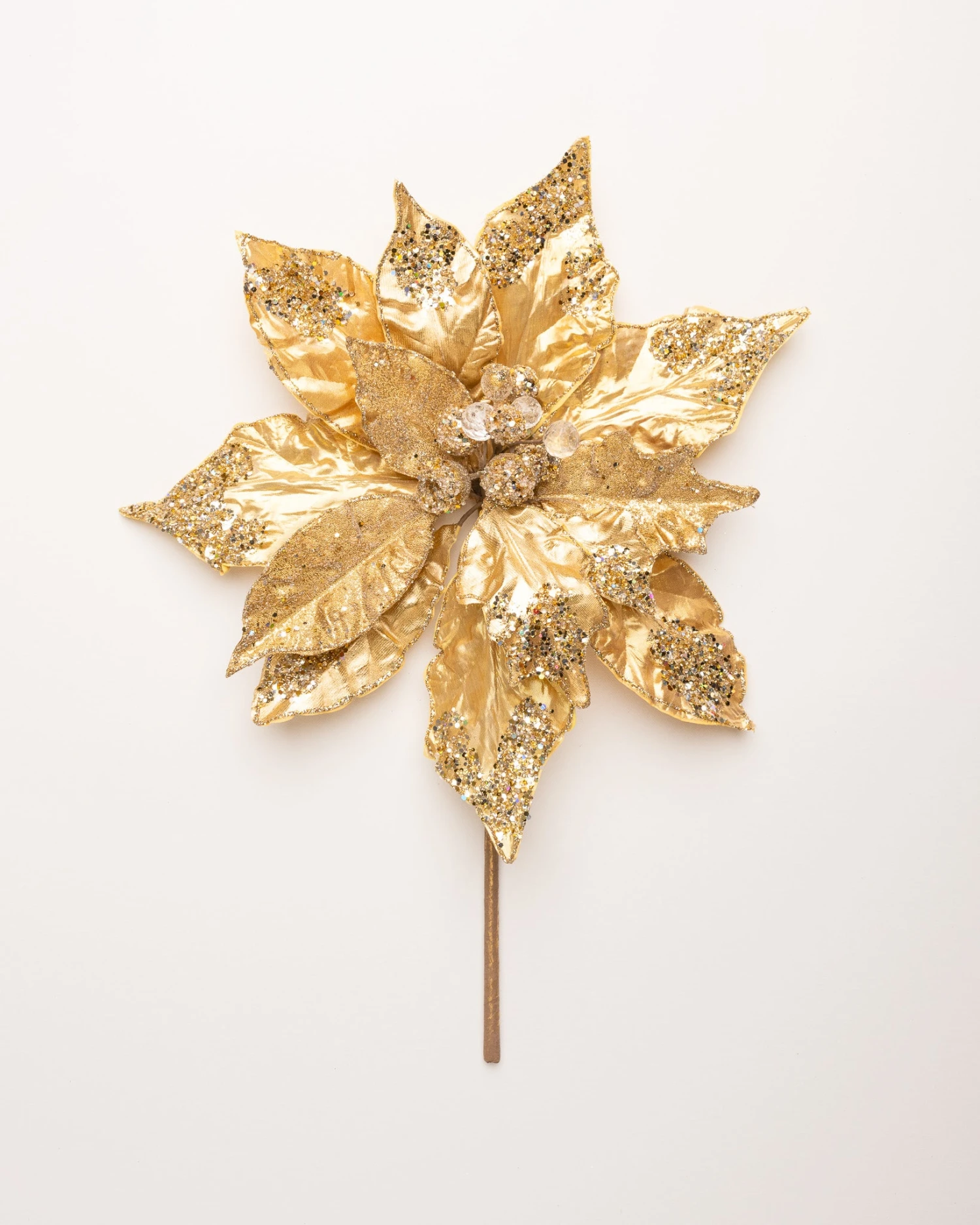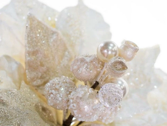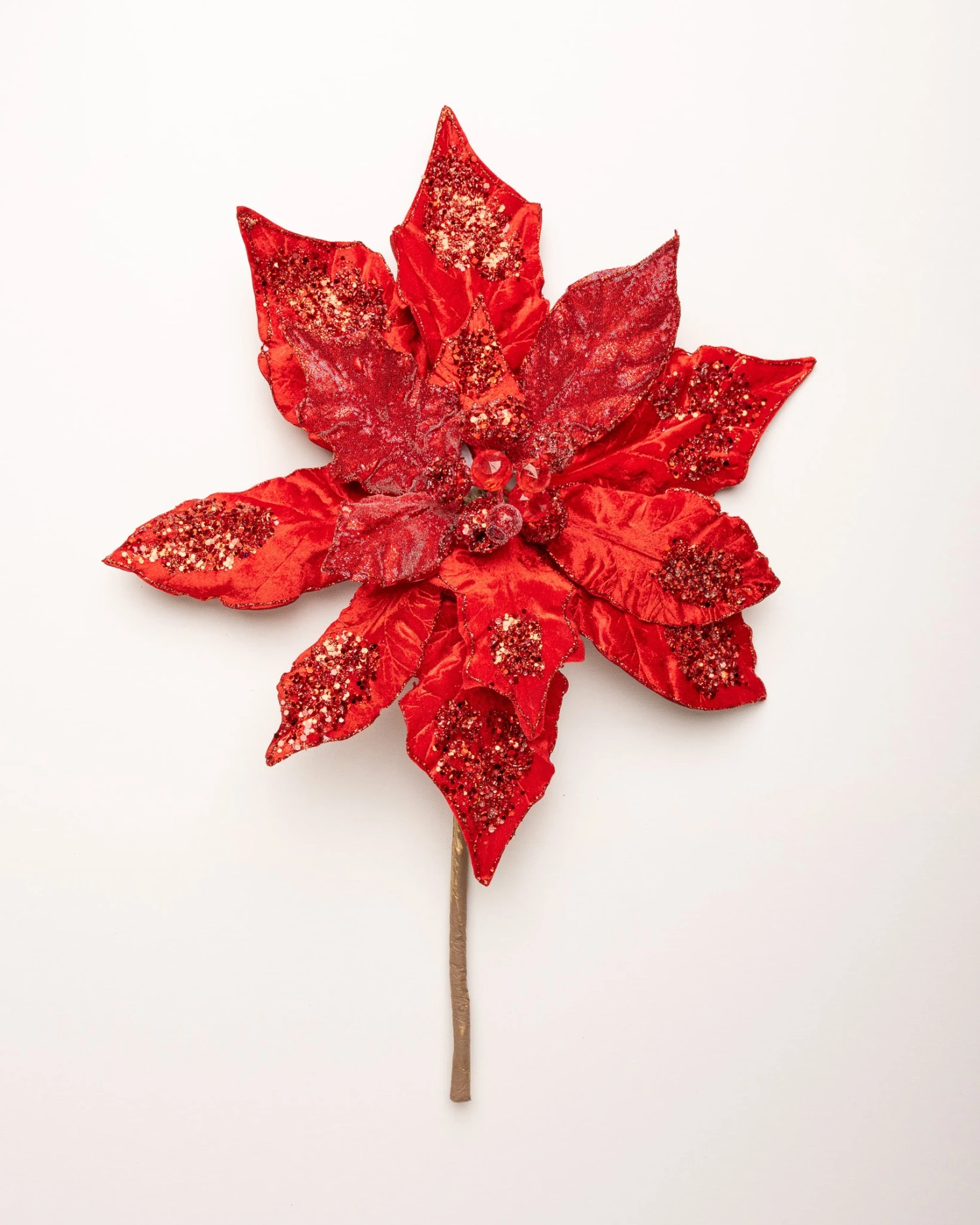 This giant poinsettia is great to use for the holidays or any other special occasion that calls for a little holiday bling! Use it alone, or let it add a bit of glamor to wreaths and other floral arrangements. It could be that perfect finishing touch for your decorative tree, swag, or centerpiece… the possibilities are endless!