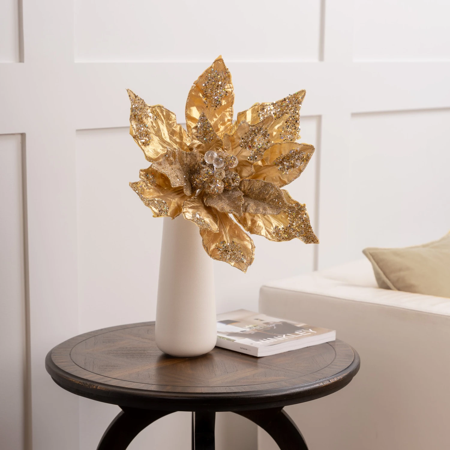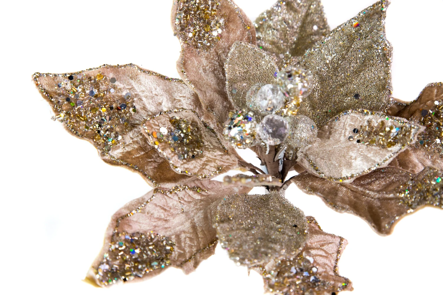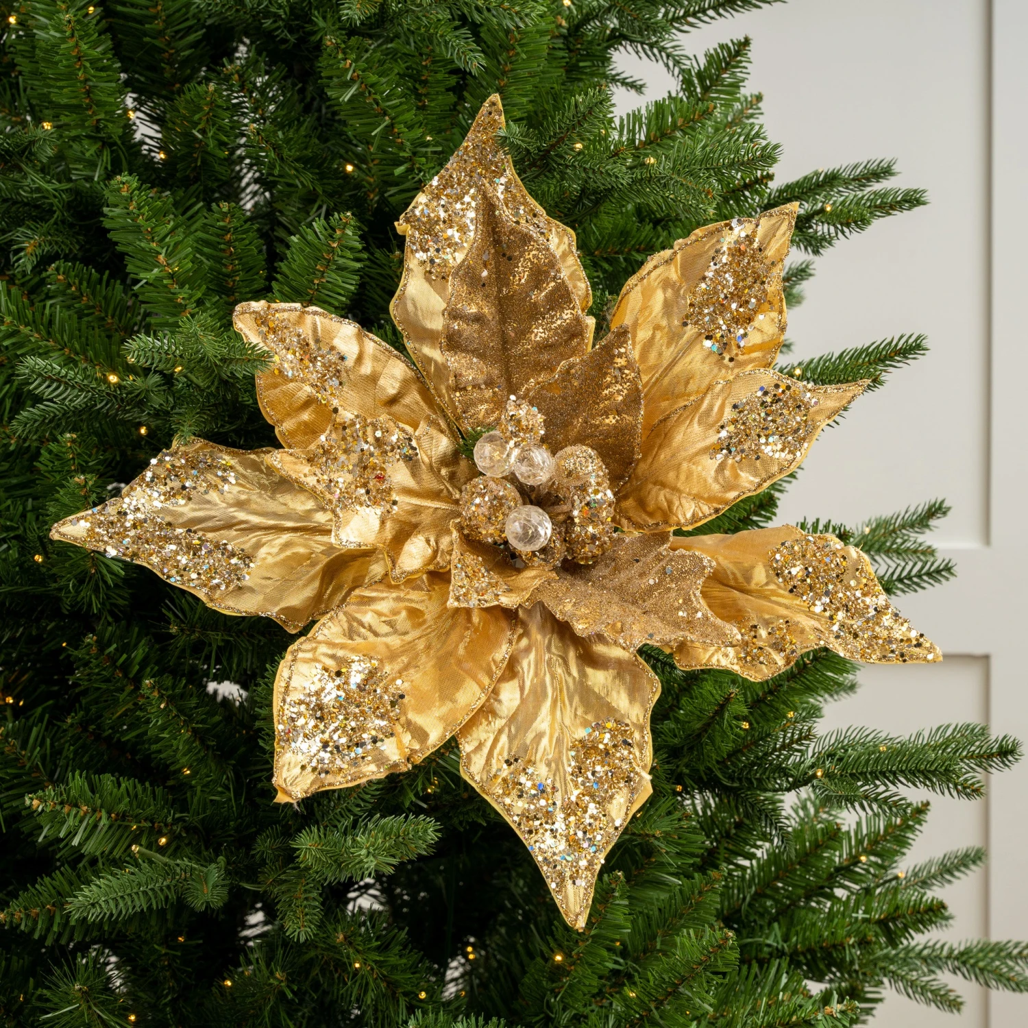 This giant poinsettia is great to use for the holidays or any other special occasion that calls for a little holiday bling! Use it alone, or let it add a bit of glamor to wreaths and other floral arrangements. It could be that perfect finishing touch for your decorative tree, swag, or centerpiece… the possibilities are endless!