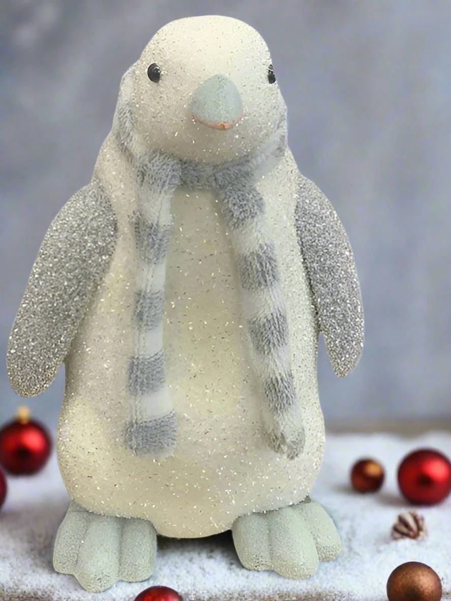 Embrace winter wonder with this 10″ Polar Ice Penguin. This shimmering figure is perfectly adorned in arctic blue, white, and grey, with a striped scarf for a toasty touch. A perfect addition to any winter holiday display – let this Penguin embrace you with the snowy spirit of the season.