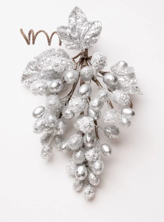 Opulence abounds with this beautiful grape cluster featuring icy silver accents. Perfect for accenting any home decor.
