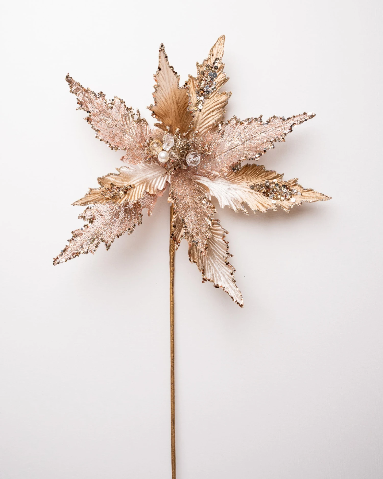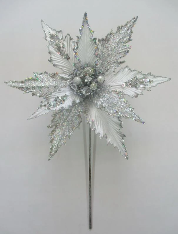 Perfect for accenting Christmas decor or for use year round! This platinum poinsettia is pure bliss! It surely adds a unique, finish to your floral arrangements.
