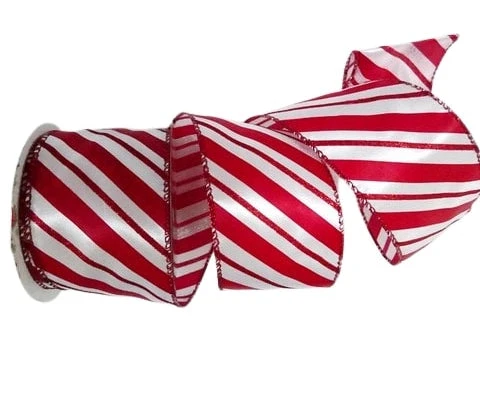 This wired fabric ribbon features whimsical peppermint stripes in bright classic Christmas colors of red and white. Sewn wire edged ribbon allows you to bend and shape your creations to decorate with ease, making it perfect for decorating Christmas trees, wreaths, or gift accenting. Made in true designer quality, and crafted from the finest materials, this gorgeous ribbon is sure to bring festive elegance to your holiday decor!
