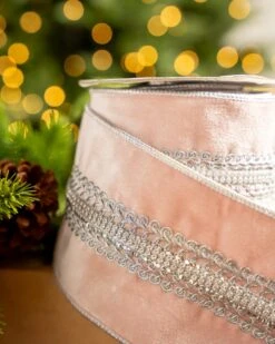 This Emerald Velvet Ribbon with a silver back and crochet trim is the perfect addition to all your holiday decorations and gift wrapping. The luxurious velvet material exudes elegance while the pop of emerald green adds a touch of festive cheer. The silver backing adds a subtle shimmer to make your decorations stand out even more. The delicate crochet trim adds a charming finishing touch that will make your gift wrap or holiday decor look even more special. Elevate your holiday game with this stunning ribbon!