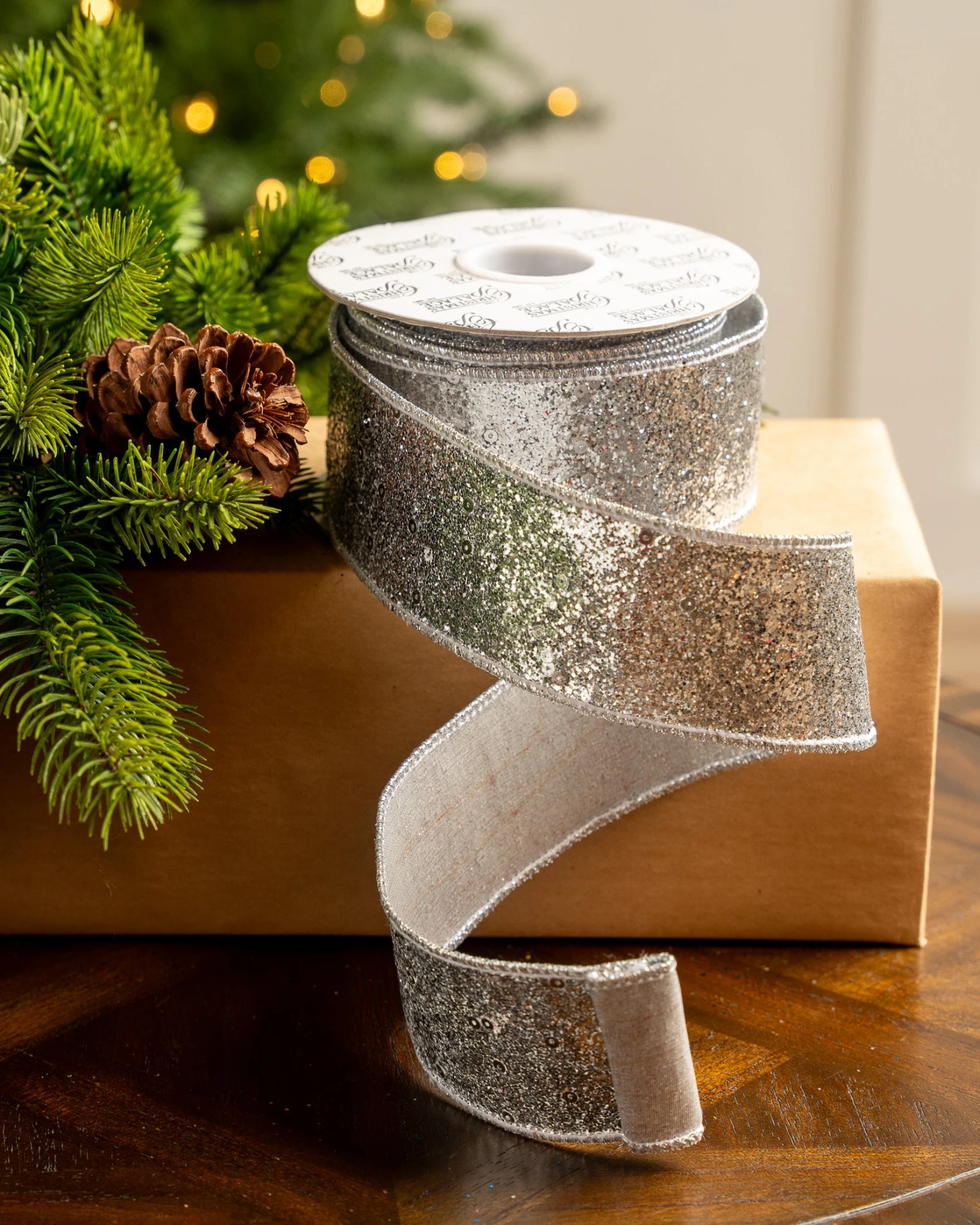 2.5″ X 10YD Silver Full Glitter Ribbon