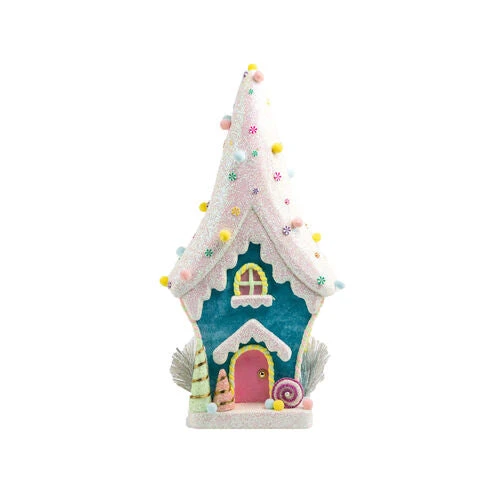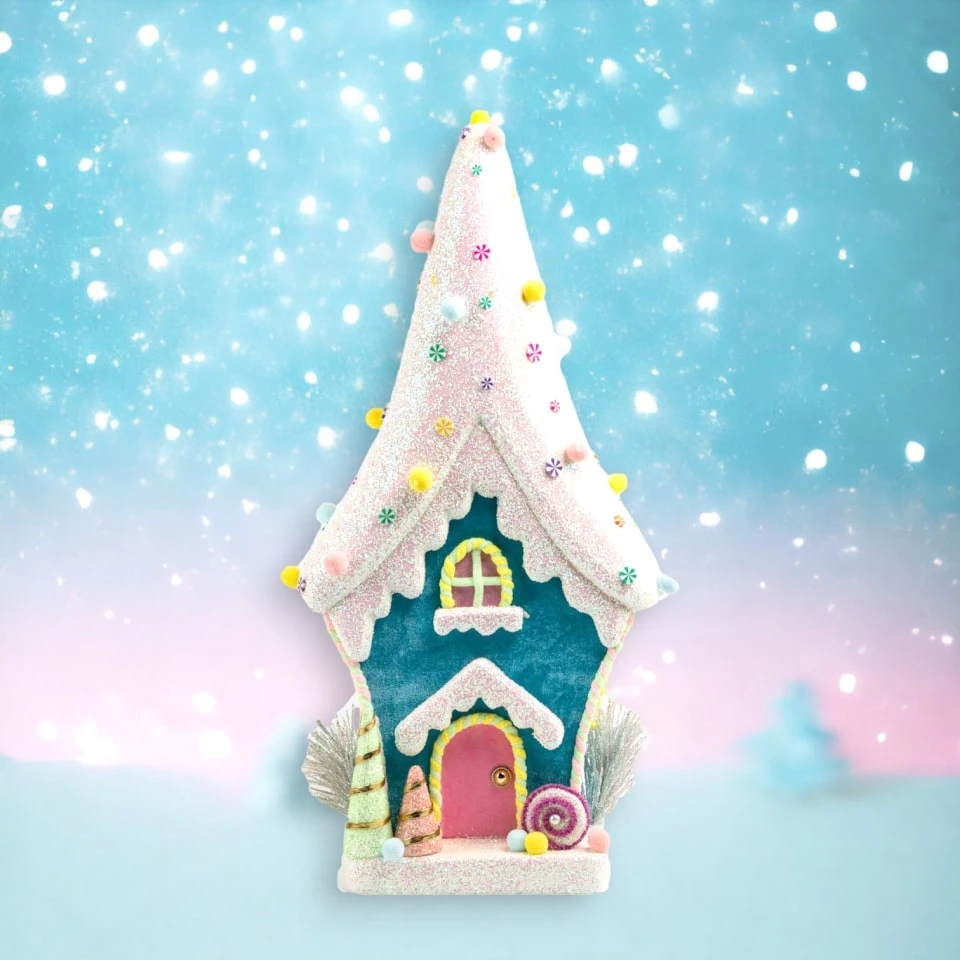 Add a touch of enchantment to your holiday decor with our 25″ Pastel Candy House! This stunning tabletop decor boasts a rich blue color adorned with iridescent glitter, perfect for creating a magical Christmas display in any room. This candy house features sweet candy sprinkles that bring joy and whimsy to your home. Whether you’re hosting a holiday gathering or looking for the perfect gift, our candy house is sure to delight all who see it.