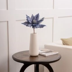 24″ Blue Metallic Veined Poinsettia Stem Set Of 12