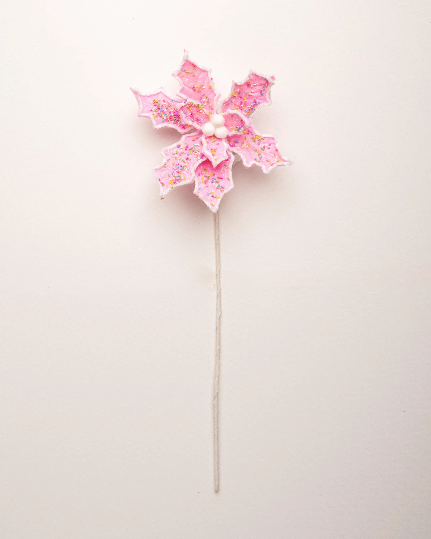 Accent your whimsical or candy themed trees with this eye-catching candy sprinkle themed green poinsettia. This poinsettia would complement any of your candy themed, gingerbread themed, or colorful design ideas.