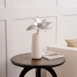Unmatched in its lustrous impact, our sequin edge poinsettia will make a dramatic statement wherever it is displayed. Create dimensional depth by spreading throughout your tree among sheer ribbon and elegant sprays allowing its metallic finish and glittery elements to shine.