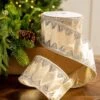 This vibrant red with black and glitter gold wire edge Santa’s Belt ribbon is great for decorating Christmas gifts, trees, stairs, railings, tables, chairs, candles, doorways, parties, wreaths, swags, and more.