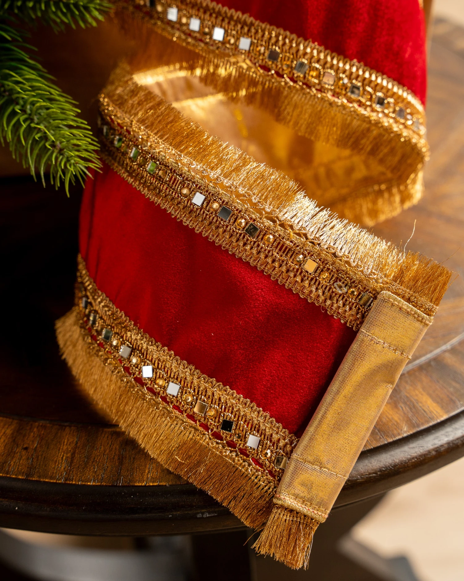 4″ X10YD Red Velvet Ribbon With Mirror On Edge