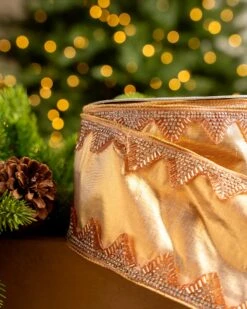Make your Christmas tree the envy of everyone with our stunning 4″ X10YD Rose Gold With Silver Trim! This chic and elegant trim is the perfect addition to your festive decorations as it effortlessly captures the essence of luxury and sophistication. Crafted with high-quality materials, this shiny and durable trim will ensure your tree shimmers and shines bright throughout the holiday season. So why wait? Spruce up your tree and make it the talk of the town with our Gold With Silver Trim. Order now and elevate your Christmas experience to a whole new level!