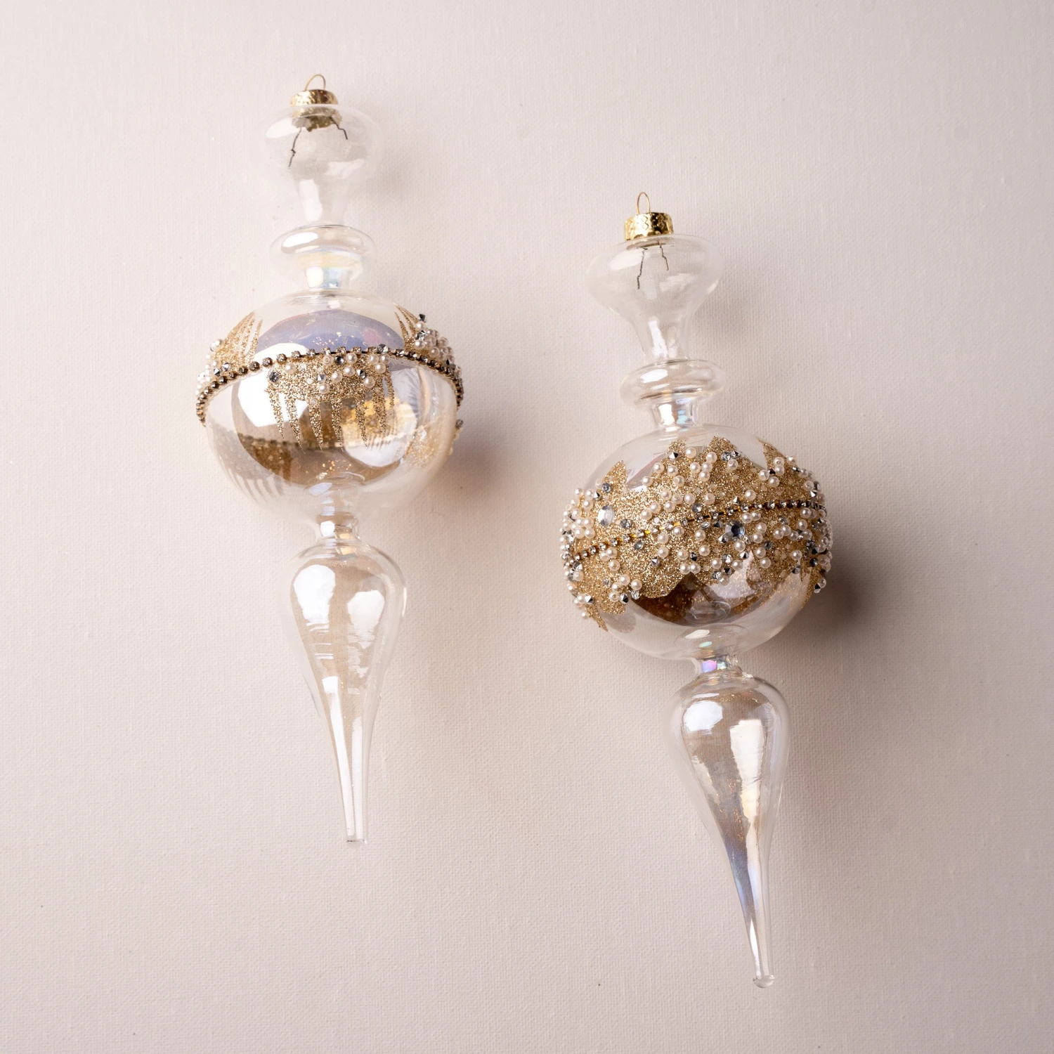 9″ Clear Gold Glitter Finial Set Of 6