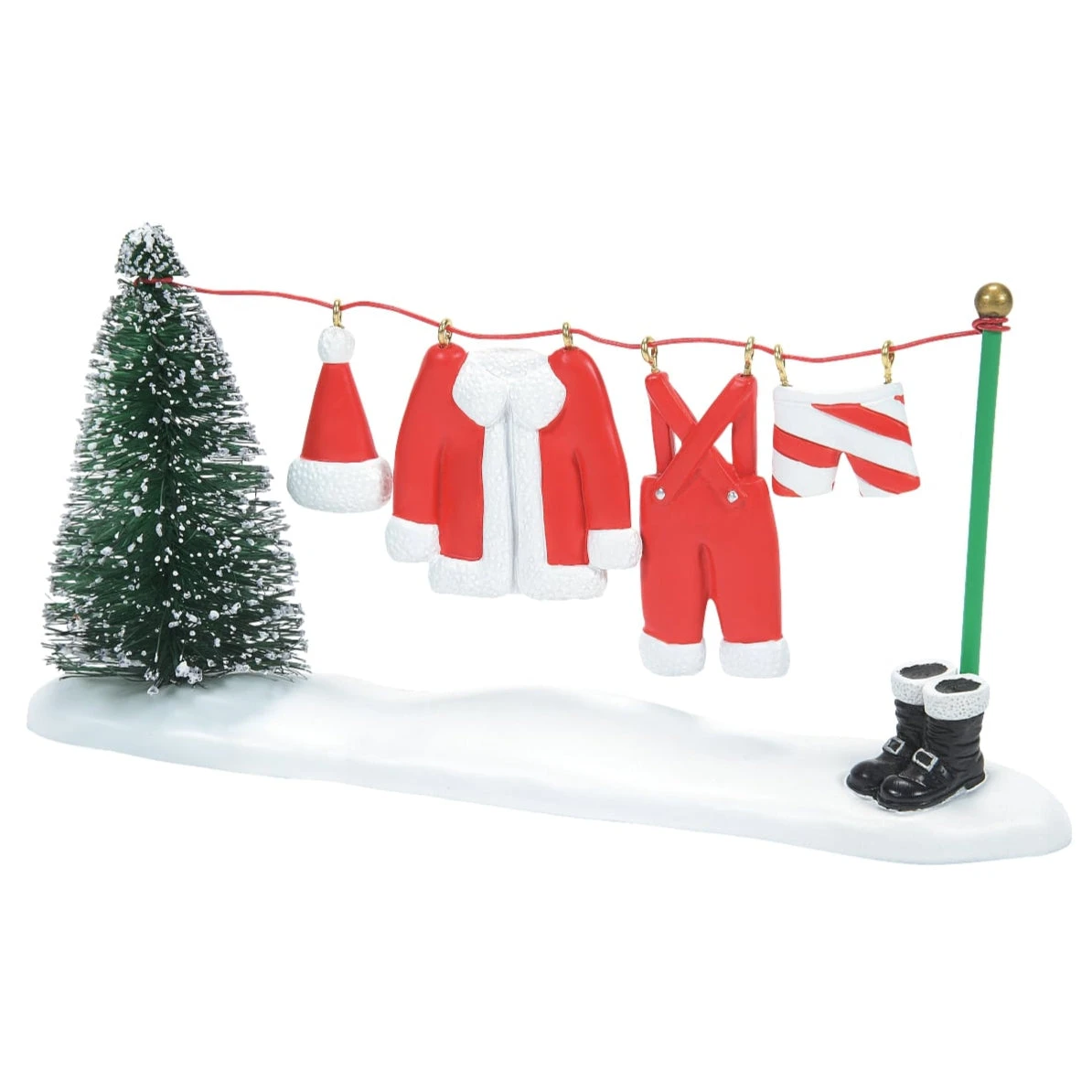 At the North Pole where the air is crisp and clean, Mrs. Claus is airing Santa’s suit, cap and mittens on the clothes line, freshening things to prepare for his big night!